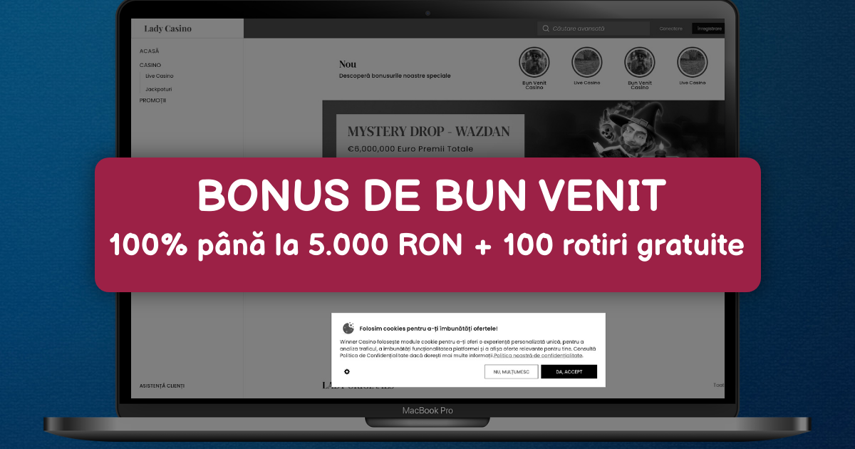 - 100% bonus la prima depunere până la 1.250 RON plus 250 de rotiri gratuite pe sloturi selectate